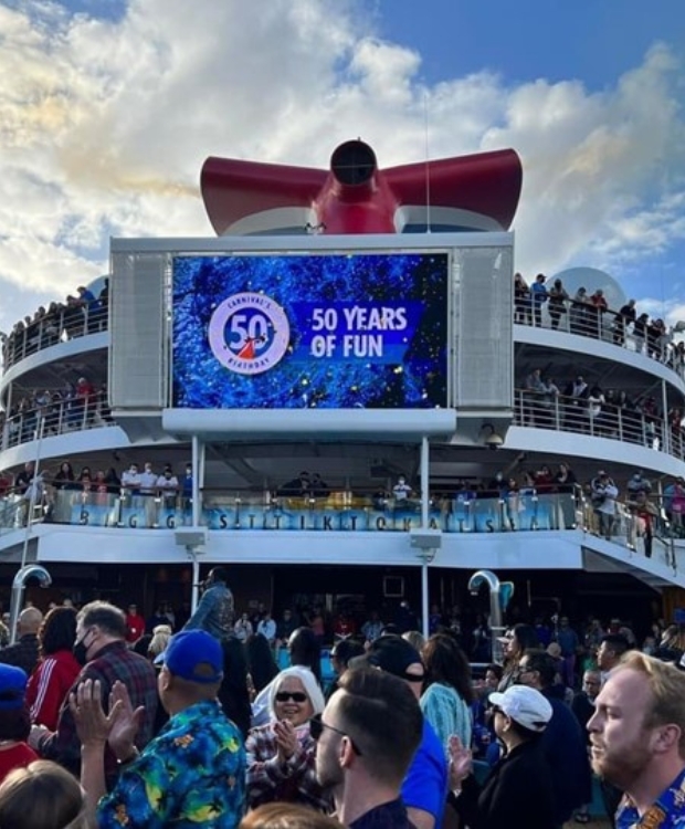 We then got an Uber to Long Beach where the Carnival Cruise terminal is located (approx. 40 minutes drive). Excitement was in the air. Carnival’s 50th Birthday and the first cruising experience post-pandemic. All passengers were required to provide a negative PCR test taken 48 hours before boarding and provide proof of vaccination. Knowing that these were the requirements to board the ship, I felt comfortable that everything was being done for the safety of all passengers.