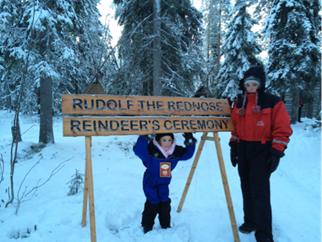 Christmas Eve was spent at Santa’s Hideaway. Although -24ºC it was sunny so you are tricked into thinking it is not that cold until you step outside and your nose hairs freeze once again. It was a great day though. Playing with elves, making snow angels, reindeer sled rides (where we got our reindeer license that is valid for 4 years), visiting Santa’s workshop and the kids getting a letter from Santa as he was too busy to be there at that time. Lunch in big teepees again or soup and paella which the kids loved again. We were there for about 4hours playing in the snow and decorating Christmas Trees. Best day ever according to Sophie.