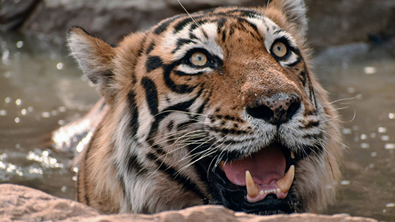 Ranthambore National Park, a massive 1300 square kilometre stretch of country, here our group were super privileged to have sightings of six Bengal tigers; males, females and cubs! A large male bathing in a rock hole only meters from our jeep, a gorgeous female walking along a two-wheel dirt track with us, a mum with a kill, numerous peacocks, deer, monkey, mongoose and more.