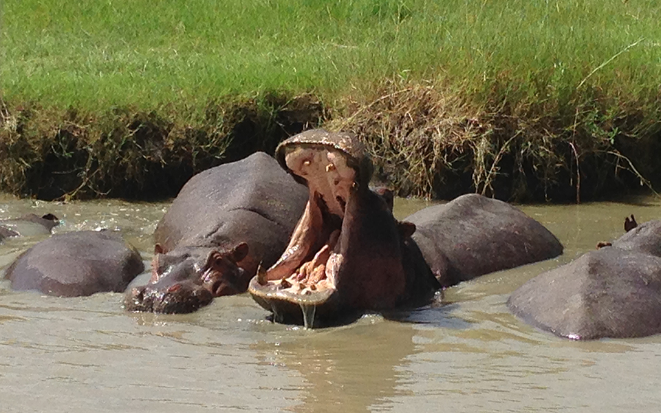 Our safari concluded with a 3-night stay in a fully tented camp located in the middle of the Serengeti. The famous Serengeti is Tanzania’s first National Park and covers a massive 14,750 km² and its name translates to “endless plains” in the Maasai language. Each day we set off in a different direction covering many areas of the Serengeti’s grassy southern plains. The Serengeti plain is punctuated by granite and gneiss outcroppings known as kopjes and we saw extensive wildlife including some of the mammals mentioned previously but also adding the crocodiles, topi, guinea fowl, Elephant Shrews, eagles, jackal pups, hyrax, Coke´s Hartebeest, vultures, huge herds of elephants, tortoise, hyena pups, baby hippos, more cats (at one time 11 lions up the same tree – looking like they were hanging on a lion clothesline!). At night when we slept in our tents we could hear the animals calling at night and in the morning their footprints showed they had walked amongst our tents.