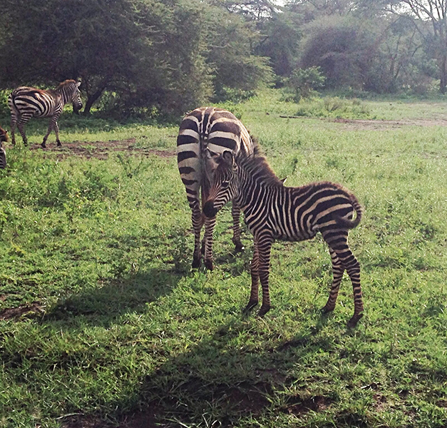 Newly arrived baby animals in Africa are truly amazing and put humans to shame in their ability to walk within hours of birth and be frolicking with their family herds within a week. We saw baby giraffes less than a week old that were already 5-foot tall and baby elephants so cute and tiny they could walk under their mother’s carriage as they weaved from side to side on their daily pilgrimage down to the watering holes. Even baby warthogs are attractive and we saw lots of mothers and babies of most animals.