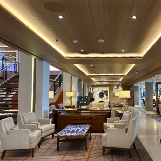The gorgeous interior spaces and sheltered sports deck on Viking Orion